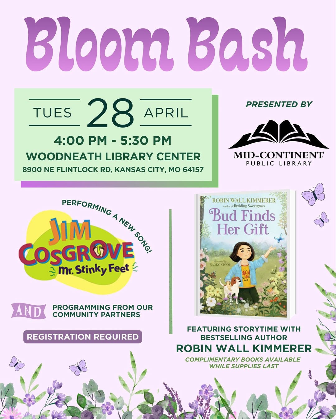 Celebrate spring at the Bloom Bash on Tuesday, April 28 at Mid-Continent Public Library‘s Woodneath Library Center!