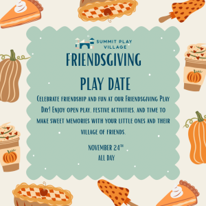 Celebrate friendship and fun at our Friendsgiving Play Day! Enjoy open play, festive activities, and time to make sweet memories with your little ones and their village of friends.
