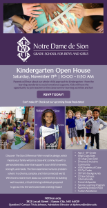 Join us for Sion’s annual Kindergarten Open House! Parents will hear about our whole-child approach to kindergarten - from the learning standards to social-emotional supports. Kids will have the opportunity to join teachers in the classroom for learning activities and fun!
