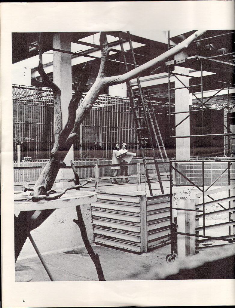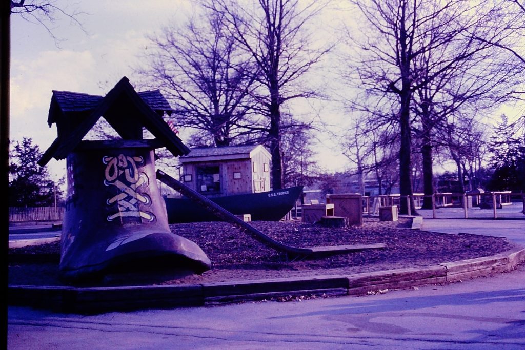 Touchtown, a children’s area, opened to the public in 1948. It featured a petting zoo with goats, sheep, rabbits and tortoises along with structures representing Noah’s Ark, the Old Woman’s Show, a hollow lion and a great blue whale. The area’s “Birthday Pavilion” was a gift from Hallmark, and a puppet theater opened in 1964. In 1970, Touchtown was remodeled and became the Education Building.