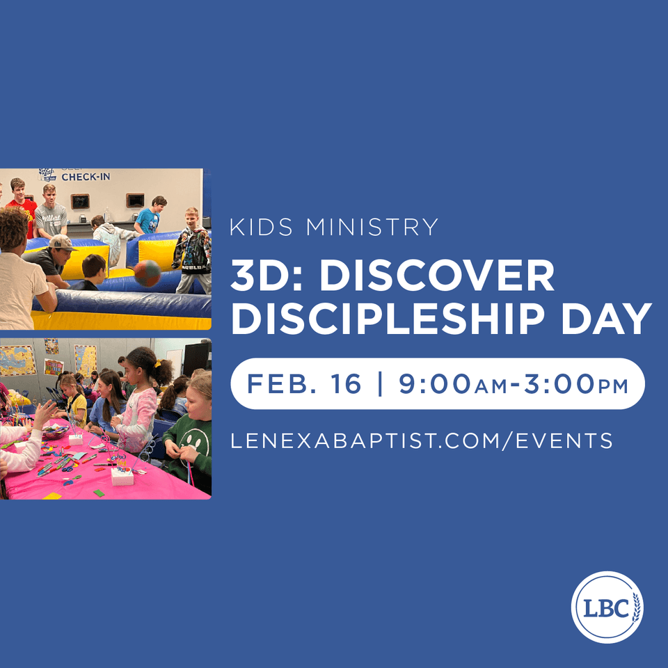 3D: Discover Discipleship Day is a fun, faith-based event for kids in Kindergarten–5th grade. Through music, stories, games, and activities, kids will learn how prayer and Bible reading help them grow in their faith.